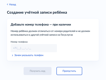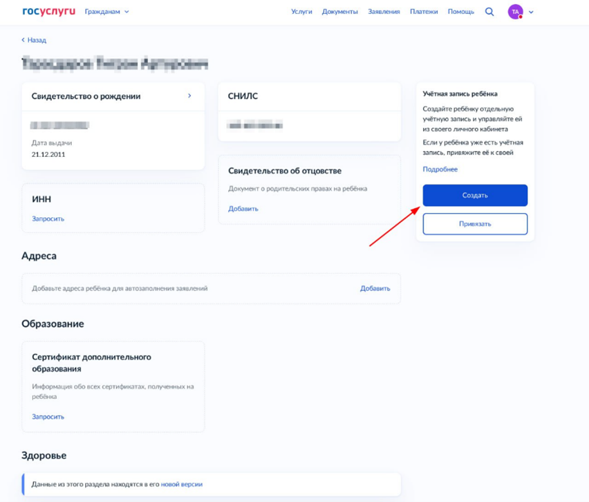 необходимо создать ребенку свой аккаунт на «Госуслугах».