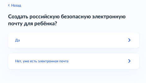Далее либо создать электронную почту ребенку, либо указать имеющуюся:
