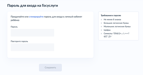 Необходимо перейти по ссылке из письма от «Госуслуг», затем указать пароль для входа ребёнка на «Госуслуги»